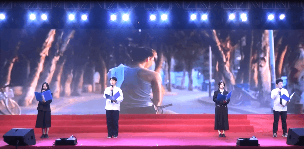 曾子杰、葉子怡、余棟、徐可可四位同學(xué)帶來詩朗誦《青春萬歲》,無論未來的路有多坎坷,只要我們心中有夢(mèng)想、有信念,就能創(chuàng)造屬于自己的輝煌。