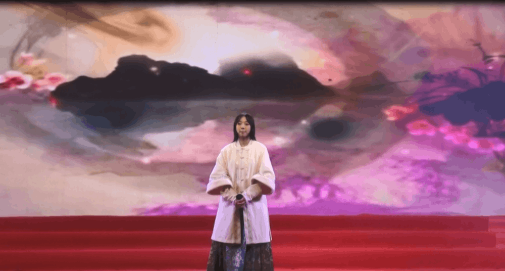 高二年級(jí)學(xué)生蘇方依然、吳何鈴、王可妍、嚴(yán)加夢(mèng)的舞蹈《山鬼》——袖若流水清泓,裙如熒光飛舞,纖腰靈動(dòng),回眸淺笑,琴棋書畫自成風(fēng)景,千嬌百媚各展風(fēng)采。