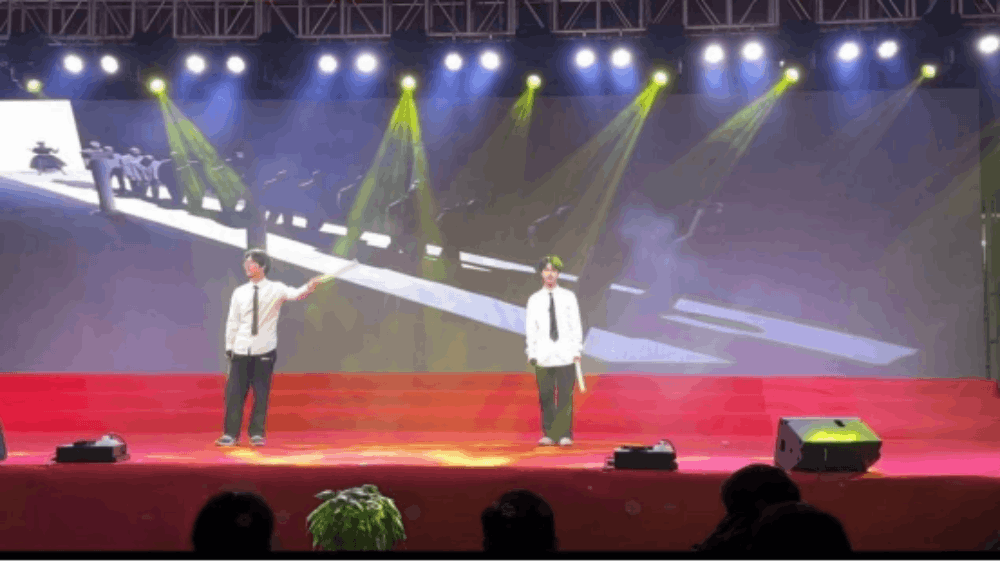 高三楊賢、章梓謙帶來的歌曲《晚安》在這個(gè)美好的夜晚,讓清風(fēng)與明月為我們送來衷心的祝福。