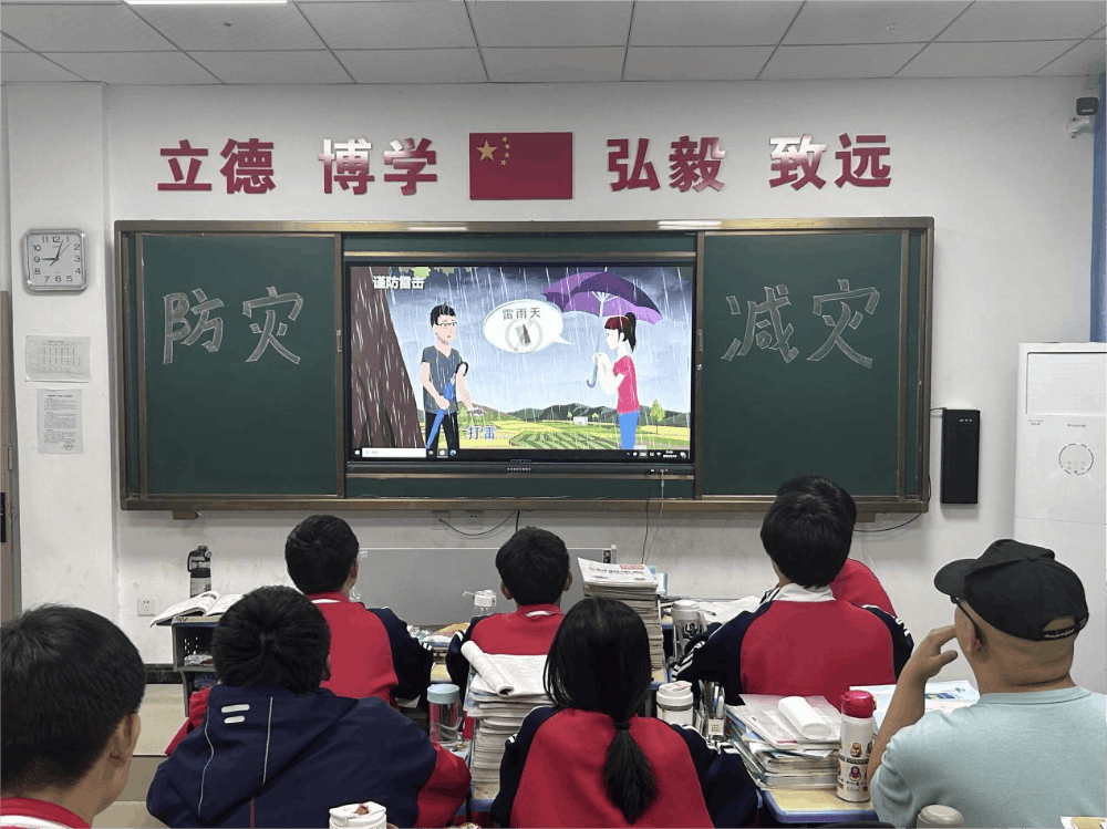 • 各班開展以減輕災害風險,守護美好家園為主題的主題班會。學校收集整理印發(fā)防災減災宣傳材料(含視頻和PPT,要求每個班級充分利用這些資料,認真開好主題班會,對學生進行防震、防火、防雷電、雷雨天氣、泥石流等安全教育, 讓學生將安全牢記在心中。
