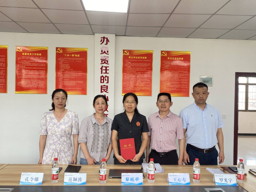 第一項(xiàng):學(xué)校范校長(zhǎng)為孝感市法院少審?fù)シü倮杵G平頒法治副校長(zhǎng)聘書(shū)。