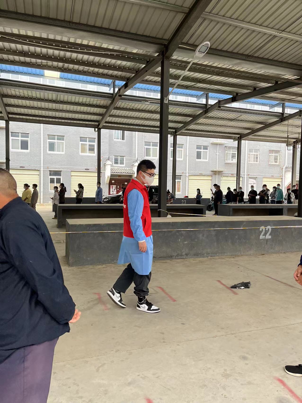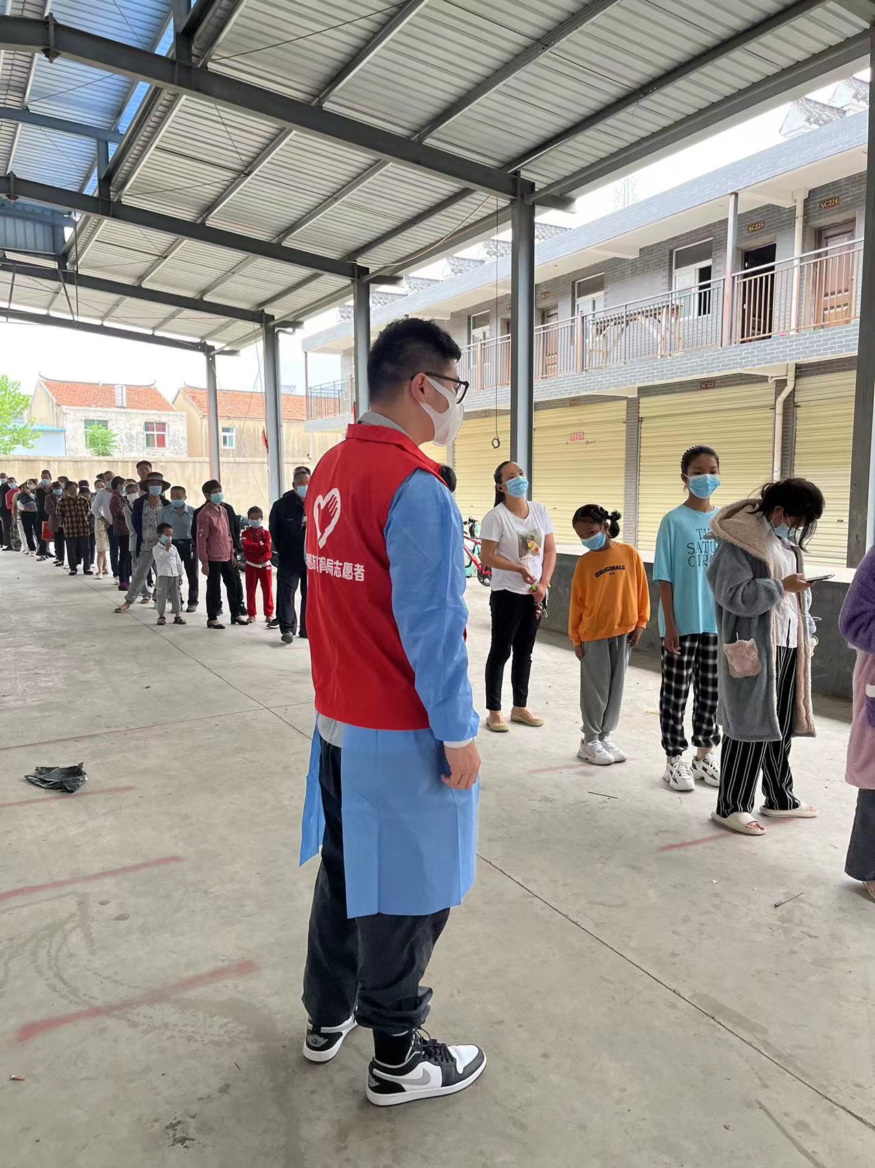 在朋興鄉(xiāng)核酸采集服務點,主要負責錄入信息,維持秩序和引導群眾采集核酸過程中,務必要佩戴好口罩,保持“一米線”,切實做好個人防護,保持安全距離。